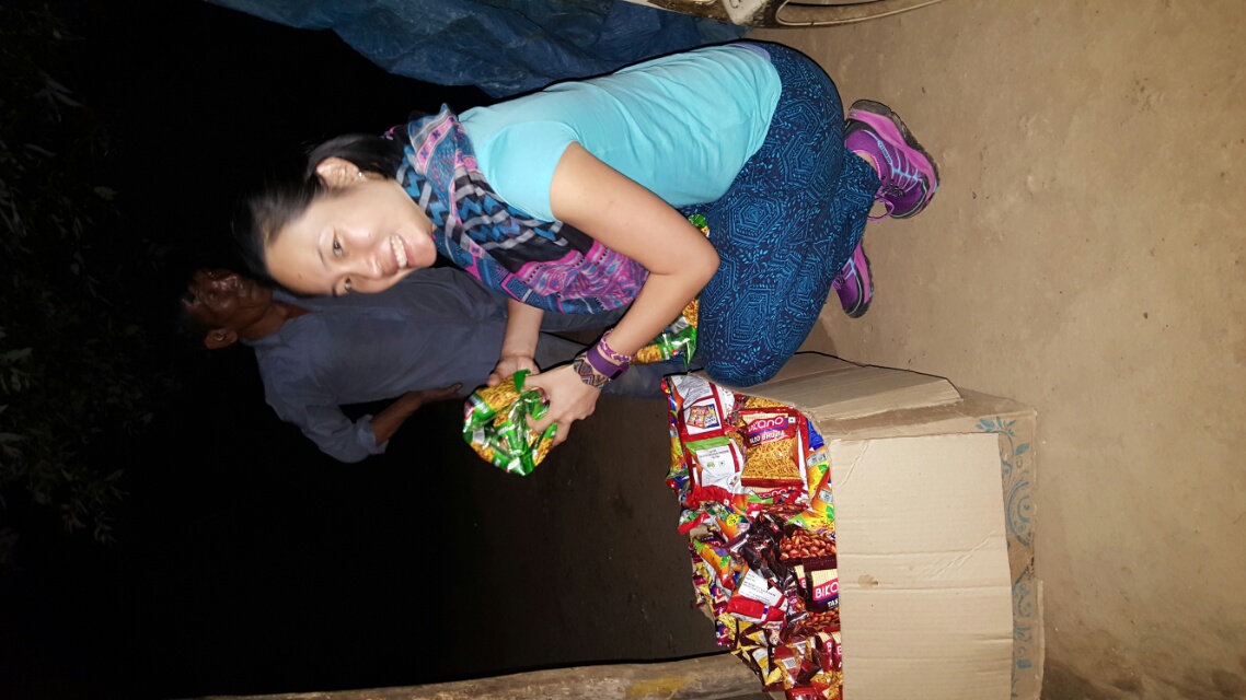 Vorm Abendessen fuhren wir dann noch los um einen Tempel, einige Onkels, Tanten, Großeltern zu besuchen und als wir zurückkamen war es stockfinster. Im „Restaurant“ war die einzige Lichtquelle das Feuer im Ofen und eine kleine Kerze. Anitas Mutter bekochte uns wieder und nachdem wir im fast Dunkeln gegessen hatten setzten sich die Eltern auf den Boden vor den Kamin und aßen auch. Wir haben später gesungen und es wurde ein lustiger Abend. Alle zusammen haben wir die Habseligkeiten, die am Stand hingen zusammengepackt und uns mit Handy und Taschenlampen durch den Wald auf den Weg zum Haus gemacht.