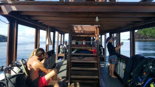 Sofort als ich zurück auf dem Boot war, habe ich Vangelis sozusagen zur Rede gestellt! Ja – zusammen tauchen schon, aber er braucht keinen Buddy und will auch keinen.
