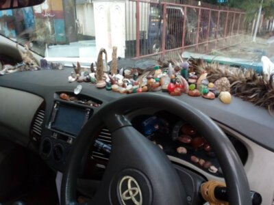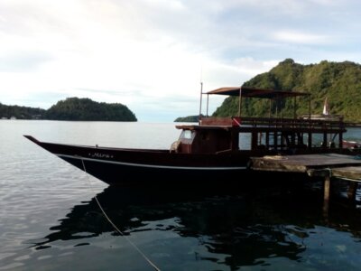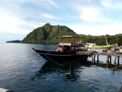 Hendrik hat mich wie versprochen mit seinem Taxi (mit dem reich verzierten Armaturenbrett) morgens vom Hotel abgeholt. Ich bot abends noch zwei Geschäftsreisenden (eine Holländerin und einem Indonesier) mein Taxi mit ihnen zu teilen. War ne gute Idee, denn sie die bezahlten den Fahrer am Hafen und wollten kein Geld von mir.