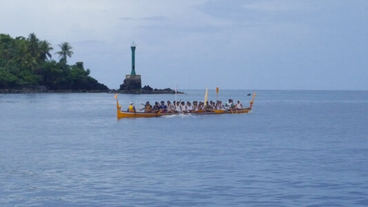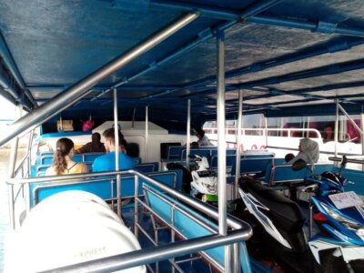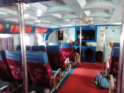 Die Fahrt dauerte 6.5 Stunden und das Meer war sehr ruhig. Der Unterschied, zwischen „normaler“ Klasse und VIP, besteht darin, dass man nicht auf Plastiksitzen sitzt und man beim Eintreten unvermittelt schockgefroren wird. Nicht nur wegen der Kälte verbrachte ich die meiste Zeit auf dem Oberdeck, sondern besonders wegen einer deutschen Frau, die direkt hinter mir saß und ohne Punkt und Komma auf ihre Nachbarin einredete.