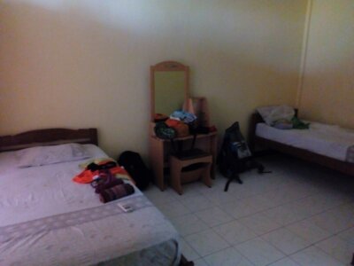 Ein Dive-Guide vom Bluemotion hatte mich auf seinem Roller (samt Rucksack) hergebracht und ging dann mit mir auf die Suche nach einer Unterkunft für eine Nacht. Das große Problem hier ist, dass die Fähre Dienstags die neuen Gäste von Ambon bringt und die „alten“ erst am Mittwoch abreisen. Dieses Problem hat die Insel zweimal in der Woche.