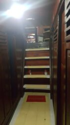 Ich teile eine 2-Bett-Kabine mit Tanja. Die Betten sind recht schmal (vielleicht 60 od 70 cm). Alles sehr einfach, aber jede Kajüte hat eine Klimaanlage. Es gibt ingesamt 3 „Dusch-Toiletten“, die alle schön gefliest, gekachelt und sauber sind.