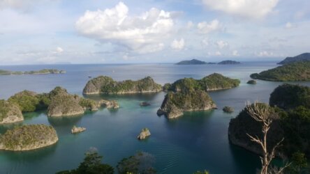 Das ist die Lagune, die am als erstes sieht wenn man Raja Ampat googelt. Wir hatten Glück und die Sonne kam für ein paar Stunden raus. Der Aufstieg (220 Stufen) zum Aussichtspunkt hat sich gelohnt.