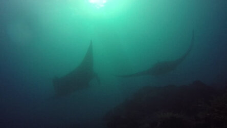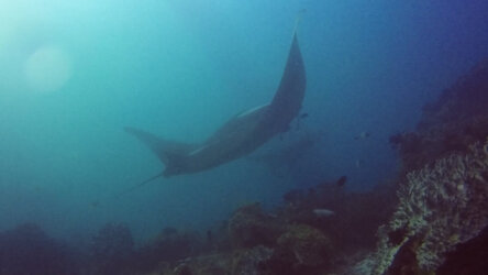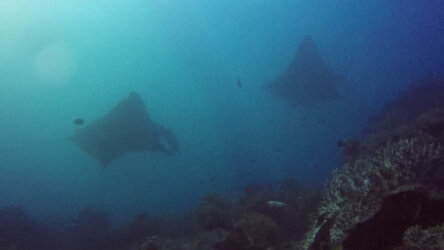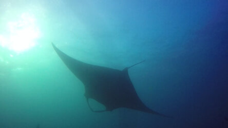 Insgesamt 3 Riff-Mantas waren da und auch mal gleichzeitig. 2 kleinere mit einer Spannweite von etwa 3 Metern und ein großer „Black-Manta“ mit etwa 4 Metern.
