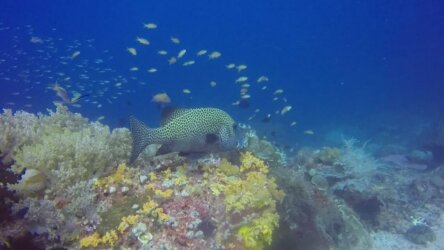 Die Tauchgänge sind weiterhin toll, die Fische sind einfach größer und wir haben auch schon viele Fischschwärme gesehen. Obwohl wir inzwischen teilweise Sichtweiten von 15 bis 20 Metern haben – ist es mit Banda Neira nicht zu vergleichen. Schade, ich hatte eigentlich „glasklares“ Wasser erwartet.