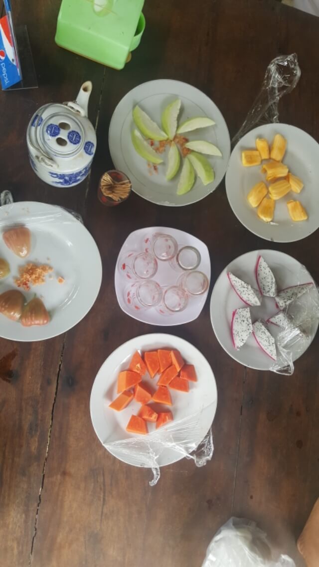 Auf dem Rückweg legten wir dann einen Restaurant einen Stopp ein um uns „auszuruhen“ haha, doch eher um Geld auszugeben. Immerhin gab es Tee und Früchte umsonst, weitere Köstlichkeiten wie gebratene Ratte, Frosch und Schlange hätten wir natürlich bezahlen müssen.