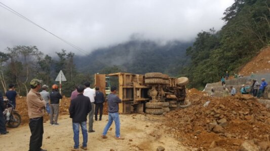 Keine 10 Minuten später standen wir wieder! In einer Baustelle war ein LKW umgestürzt und versperrte die komplette Fahrbahn.
