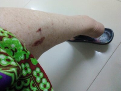 Eigentlich muss ich sagen, dass der Hund mich wohl nur „gezwickt“ hat. Hätte er richtig zugebissen, hätte das anders ausgesehen. Glück im Unglück. Der Schreck saßs mir tief in den Knochen.