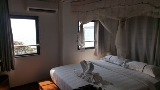 Ich war erleichtert als ich meinen schönen kleinen Bungalow am Hang mit Aussicht aufs Meer bezog 😉