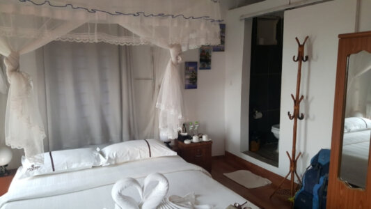 Eine Kurve weiter war schon mein Hotel und die Leute dort desinfizierten meine zwei blutenden Wunden sofort.