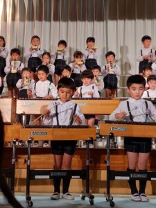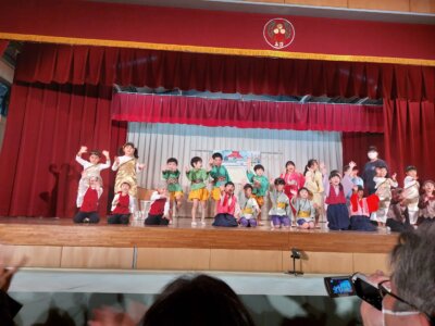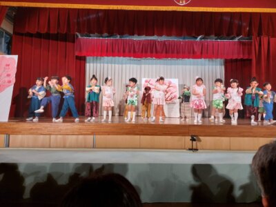 Die Aufführungen waren echt klasse. Kinder von 3 bis 6 Jahren haben mitgemacht. Yu war vorher sehr aufgeregt, aber es hat seinen Part gut gemeistert.
