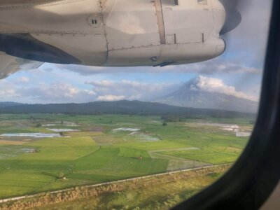Check-in war so wie man sich das wünscht. Kein anderer da 🙂 Beim Abflug konnte ich noch den Mayon fotografieren. Die letzten Tage war er fast immer komplett in Wolken eingehüllt, weshalb ich ihn nur einmal vom Meer aus sehen konnte. Er gilt als der wohl schönste Vulkan der Welt! weil er diese „perfekte“ Kegelform hat.