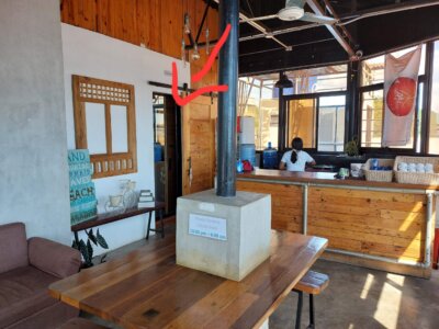Im Michel’inn wohne ich im dritten Stock. Super Ausblick, als sie mir jedoch mein Zimmer gezeigt haben, bin ich rückwärts wieder raus und habe gesagt: „Nein, das kann nicht sein, das Zimmer hat ja überhaupt kein Fenster“ – Also ich war wirklich entsetzt. Das Zimmer hat eine von außen verspiegelte Tür, durch die man von innen rausgucken, aber von außen nicht reingucken kann. Und davor kann man noch eine Holztür schieben. Dann hab ich gefragt, ob das vor meinem Raum, abends die Bar ist, ob da Party gemacht wird? Nein, Nein hier gibt es nur das Frühstück.