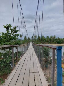Ich war sehr überrascht eine lange Hängebrücke zu finden. Die Bretter waren okay, nur nach ein paar Metern fing das Ding doch ziemlich an zu schwanken. Hat aber Spaß gemacht drüber zu gehen. Hier hat der Massentourismus den Weg noch nicht hingefunden. Alle Einheimischen sind sehr sehr freundlich und gefühlt jedes Kind hat mir zugewinkt. Unterwegs habe ich etwas Ingwer gekauft, die liebe Frau war sehr neugierig und hat mich – mit ihren wenigen Englisch Kenntnissen – ein bisschen ausgefragt. An der Schule und der Sportstätte vorbei, habe ich auch so einige Blicke auf mich gezogen. Ich glaube, dass wenige der Gäste hier durch das „Örtchen“ oder eher die kleine Ansammlung von Häusern laufen.