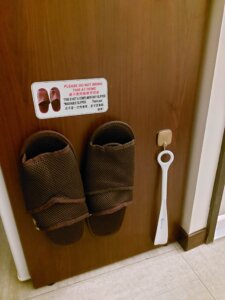 Als ich in mein Zimmer kam, hat’s mich fast rückwärts wieder rausgehauen. 30 Grad, im 14. Stockwerk und keine Möglichkeit das Fenster zu öffnen. Also erstmal Klimaanlage an und ab ins Restaurant. Als ich zurückkam war es dann erträglich. Mein Zimmer verfügt über ungewöhnlichen Luxus, neben einem Wasserkocher habe ich sogar einen Föhn, eine Badewanne und Hausschuhe! Es ist ein japanisches Bad. Ich bin hier nämlich im „Toyoko-Inn“ und habe mir deshalb im Restaurant auch ein leckeres japanisches Gericht ausgesucht. Dann wollte ich mir noch eine schöne Massage gönnen, aber leider war alles „fully booked“.