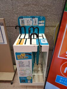 Unterwegs hab ich wieder interessante Sachen gesehen. Einen bewachten Fahrrad-Parkplatz mit Parkschein Automat und eine Regenschirm-Ausleih-Station 😉 Sind unsere Buchhandlungen auch so bunt?