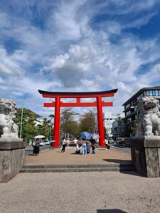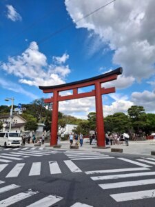 Vorher habe ich mir den Tsurugaoka Hachimangu Schrein also nochmal angesehen, aber ich muss sagen, recht kurz, denn es war so heiß, dass ich es sogar den Japanern nachgemacht habe und meinen Regenschirm als Sonnenschirm genutzt habe.