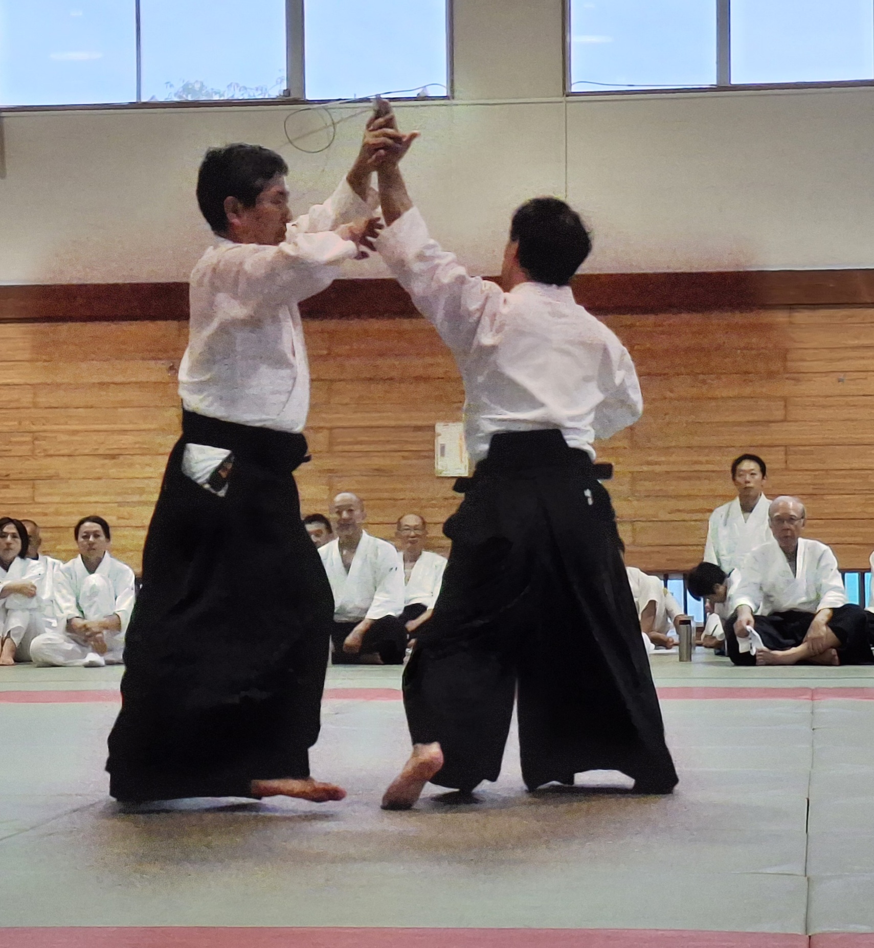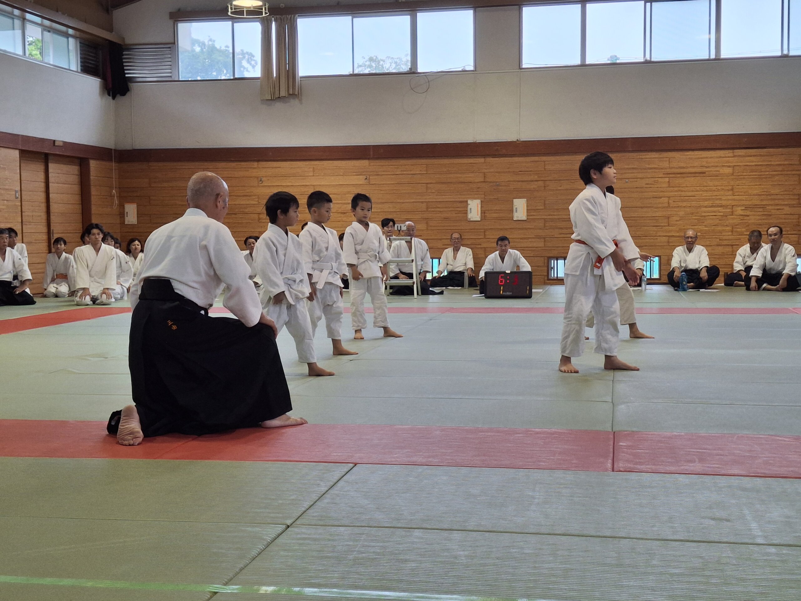 Gestern war ein besonderer Tag. YA und YU trainieren zusammen Aikido (defensive japanische Kampfkunst) und einmal im Jahr gibt es einen Familientag. Der war gestern und es war mir eine Ehre dass ich mitgehen durfte. Als der 86jährige Leiter der Einrichtung mich begrüßte konnte ich gar nicht anders als mich auch tief zu verbeugen. Die Anfänger (das kann man jahrelang sein) tragen nur die weißen Anzüge. Ab dem 1. DAN (Stufe) tragen sie zusätzlich die Hakama – einen dunklen Hosenrock.